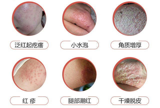 皮肤潮红、瘙痒,渐成丘疹、水疱,搔之有大量浆液性渗出物,并结痂、脱屑...